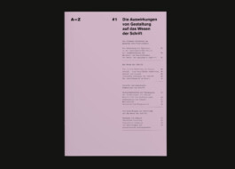 The Areal font was developed as a conceptual typeface within this project, in which an experimental type had as its main feature that every character of the font consists of the same area. That means every letter or sign has effectively the same amount of blackness. Above all the analytic project proofs the durability of type in contempt of using such a strict criterion. All the results were published in a three-piece series of books containing the theoretical study A = Z #1; The Effect of Design on the Substance of Type (On the Essence of Writing), A = Z #2; Areal — A Typeface with one single Area, A = Z #3; How and Why this Font.